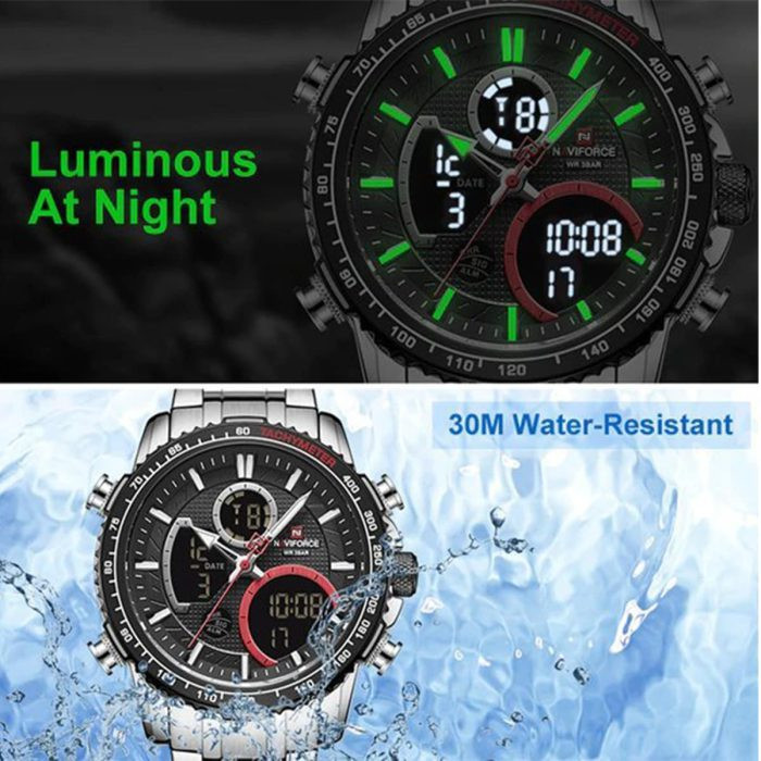 ساعتهای NAVIFORCE از مواد باکیفیت ساخته شده و اغلب مقاوم در برابر آب و ضربه هستند، که باعث دوام و ماندگاری بالا در استفاده روزمره میشود. -
